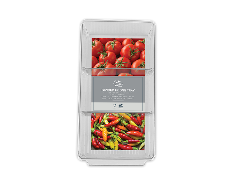 This divided fridge tray is perfect for seperating and organising fruit and vegetables.