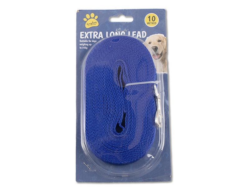 Keep dogs safe, even at long distances with this Extra Long Dog Lead. Constructed from durable polyester, each lead measures 10M long and has a sturdy metal clip on the end.
