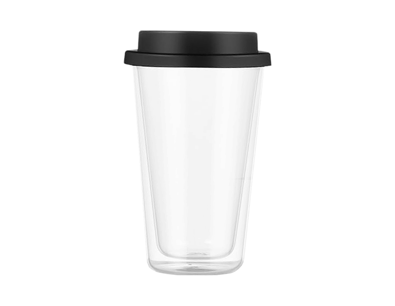 This stylish and functional travel mug features a durable doubled walled glass construction with a silicone lid. 350ml capacity is ideal for enjoying hot beverages.