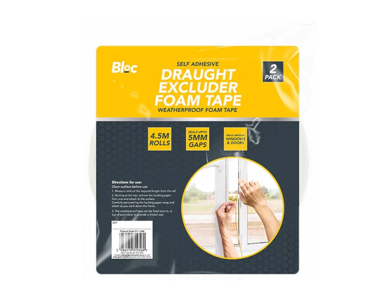 This pack of Draught Excluder Tape contains two rolls of tape that are constructed from self-adhesive weatherproof foam tape, making them ideal for protecting windows and doors from draughts.