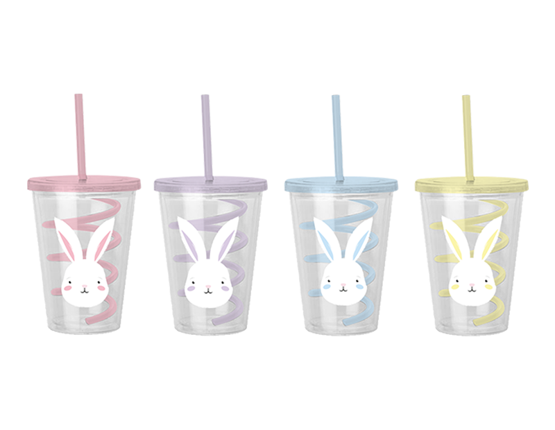 Easter cup with swirly straw! Designed with two bunny prints, a transparent cup that holds up to 650ML of contents and a straw that creates an enjoyable drinking experience. What's not to love!