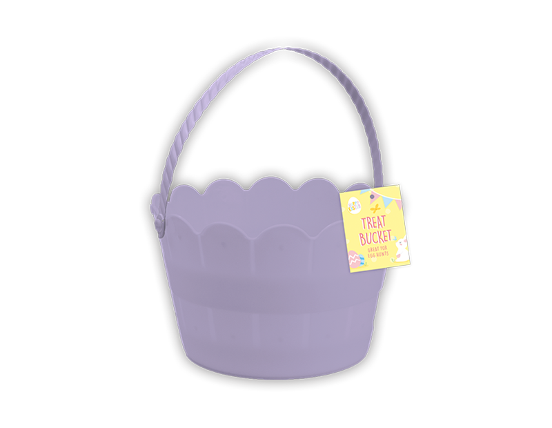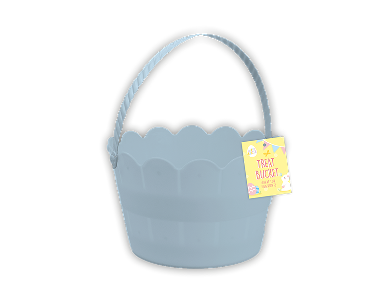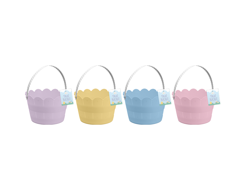 This festive bucket features a pastel colour with a matching handle and a fun scallop edge around the rim.