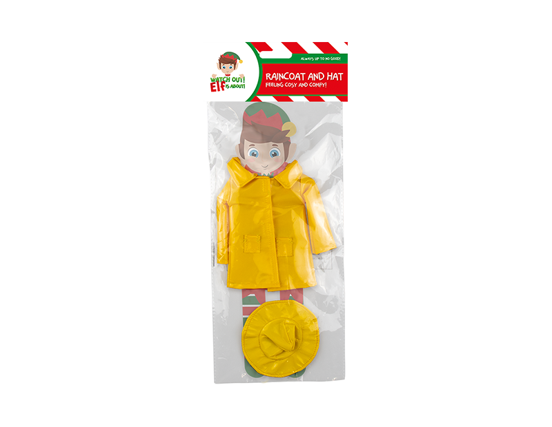 Get the elf doll ready for all seasons with this raincoat and matching hat.