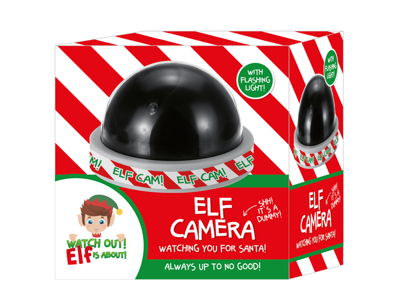 The camera features elf branding and is complete with a flashing light.