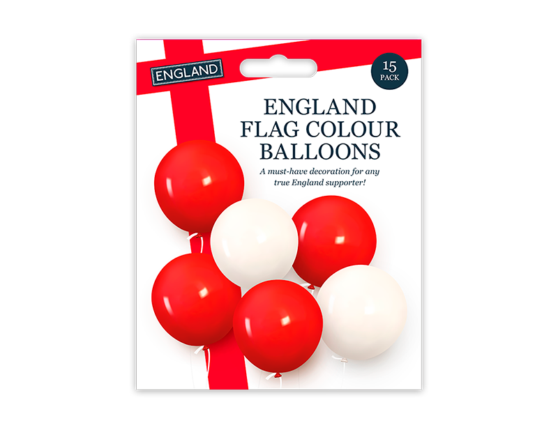 Each pack contains a mixture of white and red balloons each with a deflated size of 5.5 (W) x 11.5(H)cm. Each pack contains 15 individual balloons