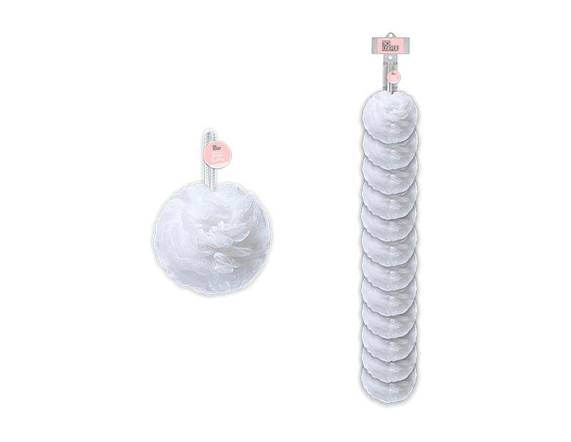 These Exfoliating White Bath Ruffle have a diameter of 15cm and are ideal for body cleansing in the bath or shower. Each ruffle has a matching hanging loop for storage.
