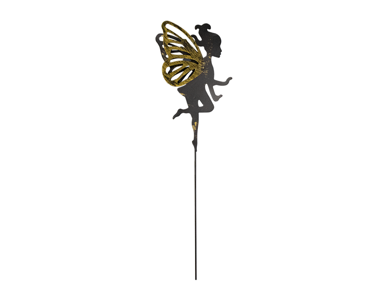 Add a magical feel to any garden with these fairy silhouette metal garden stakes. Each silhouette features a black metal body with adjustable metallic gold wings.