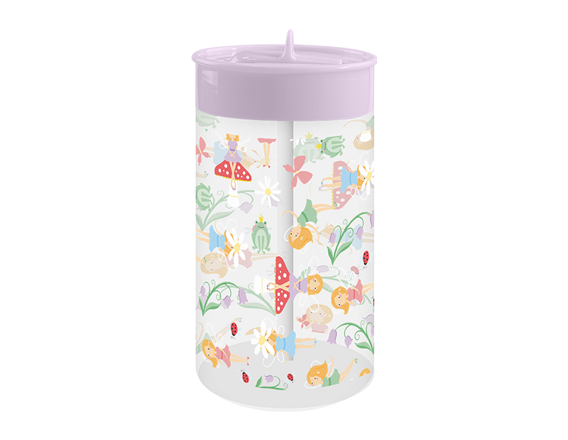 These tumblers are ideal tableware for kids at home or at school. Each cup is cylindrical in shape with no handle, and measures H13.5cm x 7.5cm dia and comes in a fun fairy print with a light pink lid and flip top straw. Each print features cute fairies, butterflies and flowers.