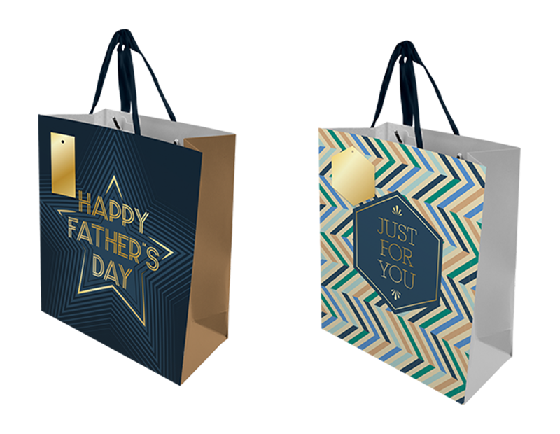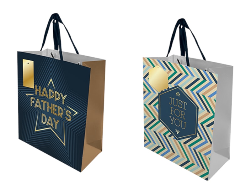 These large sized gift bags measure H32.5 x W26 x D14cm when opened, and features soft ribbon handles and a foiled design with matching gift tag.