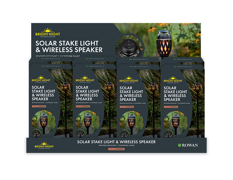 The unique cut out means that the flaming torch is striking to look at but still durable. With solar powered technology the solar stake requires minimal maintence. Each stake light also features an intergrated speaker operating via wireless (Version 5.3). Great for the summer months and alfresco dining.