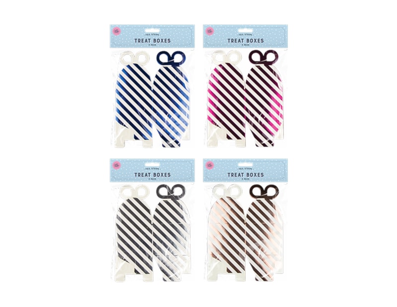 Treats look fantastic when presented in these foiled striped treat boxes. Perfectly sized for small cakes, biscuits, sweets and chocolates.