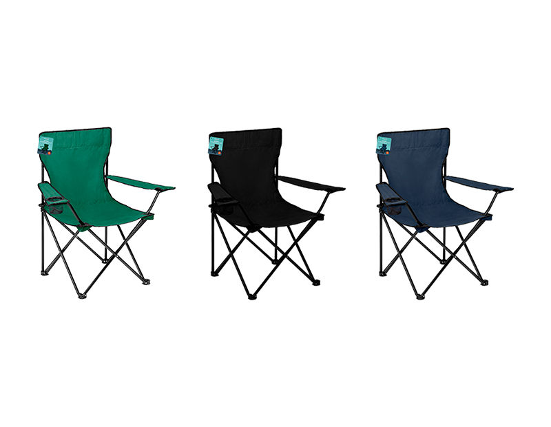 This folding camping chair is perfect for outdoor adventures. Constructed from a strong steel frame for support and stability, and weighing only 1.8kg the chair is lightweight and easy to transport around. Each chair features a cupholder built in the arm, for added relaxation and refreshment!