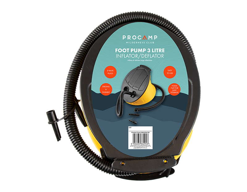 Foot pumps are a quicker alternative to hand pumps and are great for inflating and deflating small and large inflatables. Each pump has a three-litre capacity.