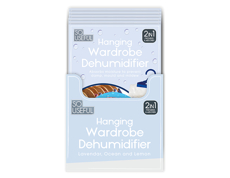 These Fragranced Hanging Wardrobe Dehumidifiers are ideal for use inside wardrobes, caravans, cupboards and more.