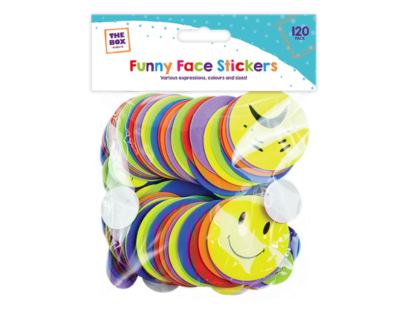 This pack of Funny Expressions Foam Stickers contains one hundred and twenty foam stickers that have assorted sizes and colours and feature a variety of facial expressions.