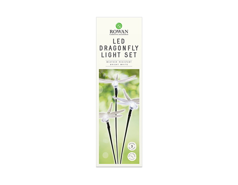 This battery operated Garden LED Dragonfly Set adds a soft evening glow to gardens and patios, and features three LED bulbs, complete with three decorative dragonflies.