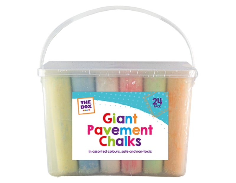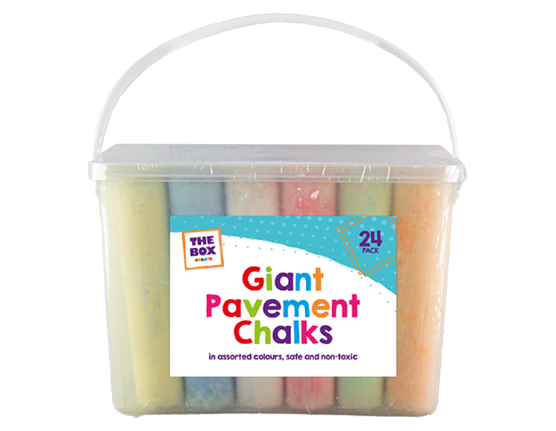 This pack comes with 24 giant chalk sticks in assorted colours, and made from safe and non-toxic materials. The chalk comes in a handy carry case for storage.