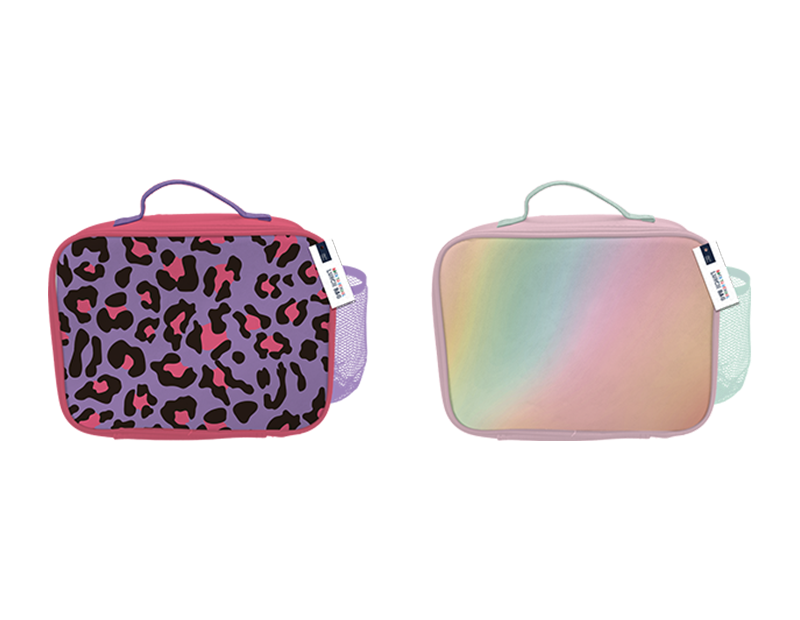 This girls lunch bag is great for back to school. It features an easy to carry handle, two zip pulls and an insulated interior to keep food fresher for longer. It also has a elasticated net on one side to hold a water bottle.