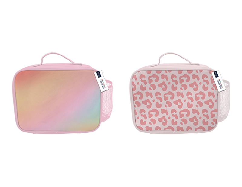 This girls lunch bag is great for back to school. It features an easy to carry handle, two zip pulls and an insulated interior to keep lunch items fresher for longer. It also has a elasticated net on one side to hold a water bottle, snacks, cutlery, etc.