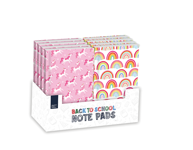 Each book measures L21.2 x W15.5 x D1.5cm. Each carton contains two assorted bright and colourful designs; Unicorns and Rainbows. This product comes with a CDU display box.