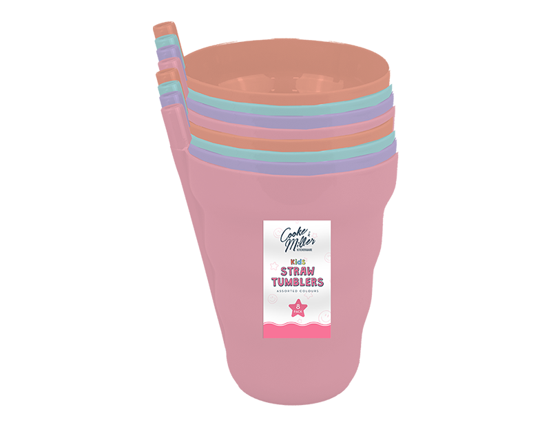 Each pack comes with eight cups, two in peach, pink, purple and blue pastel colours. Each cup is made from BPA free plastic, measures H10cm x Top DIA 8cm and has a ribbed design and built in straw.