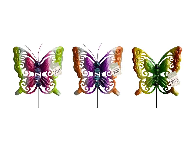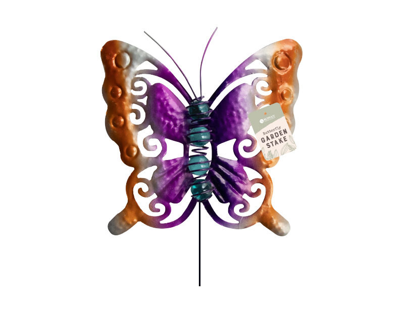 These Glass Bead Butterfly Garden Stakes are constructed from metal and feature a bright colour and decorative wing cut outs.