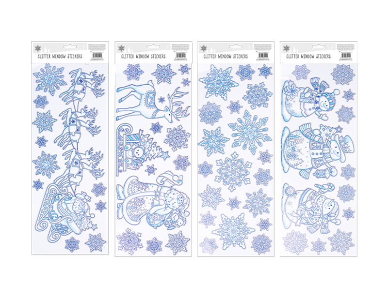 These Christmas Glitter Window Stickers can easily be applied to glass and feature a festive design with glitter embellishments.