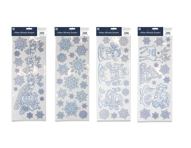 These Christmas Glitter Window Stickers can easily be applied to glass and feature a festive design with glitter embellishments.