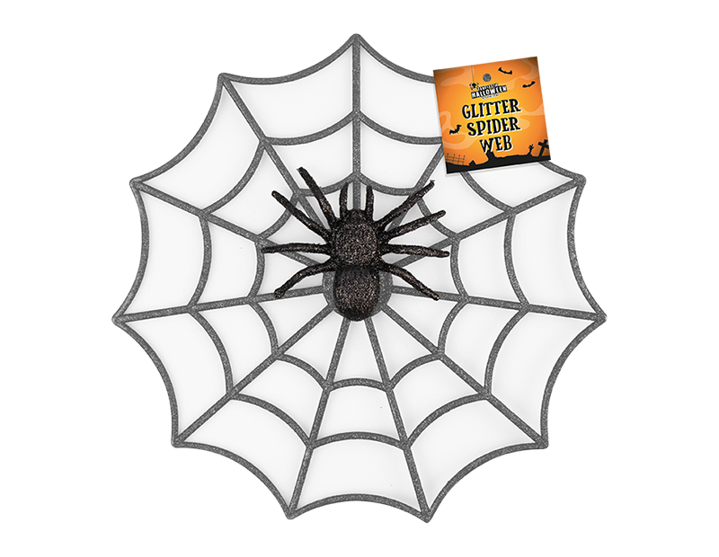 This Spider Web Decoration will make a fun (and not too spooky) addition to any Halloween party. The decoration consists of a black spider mounted onto a solid silver or black spider web that measures 29cm in diameter.