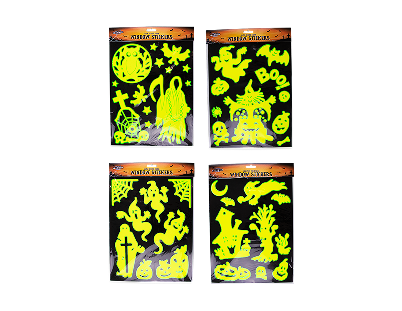These packs of Glow In The Dark Halloween Window Stickers contain an assortment of Halloween themed stickers that include ghosts, pumpkins, bats and much more.
