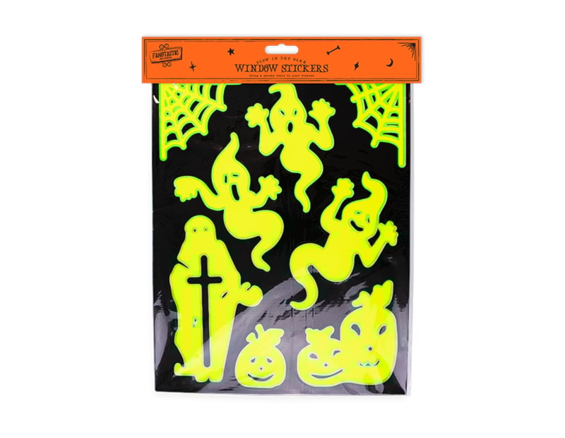 These packs of Glow In The Dark Halloween Window Stickers contain an assortment of Halloween themed stickers that include ghosts, pumpkins, bats and much more.