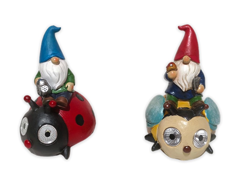 These adorable solar lights feature a gonk riding a large bug, constructed from resin and painted in bright colours. Perfect for placing in and around gardens.