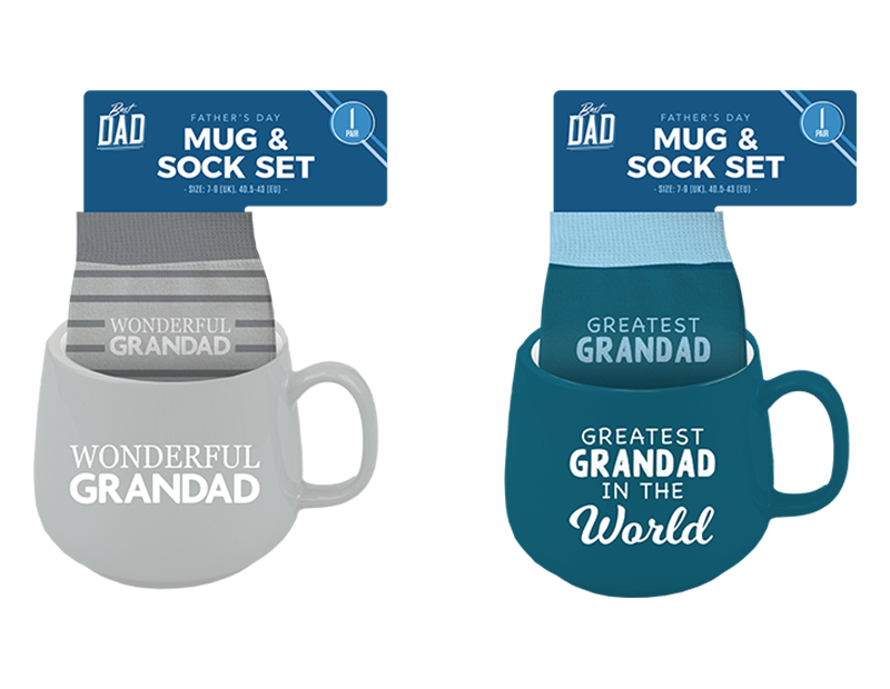 Mens socks size UK 7-9 (EUR 40.5-43), machine washable at 30 degrees. Mug measures 8.5cm tall with a 9.5cm diameter. Each carton comes with two assorted designs.
