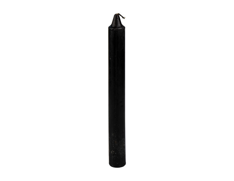 Black tapered dinner candles, perfect as a decoration for a Halloween party. Each pack contains two black wax candles that create a bleeding red wax when lit.