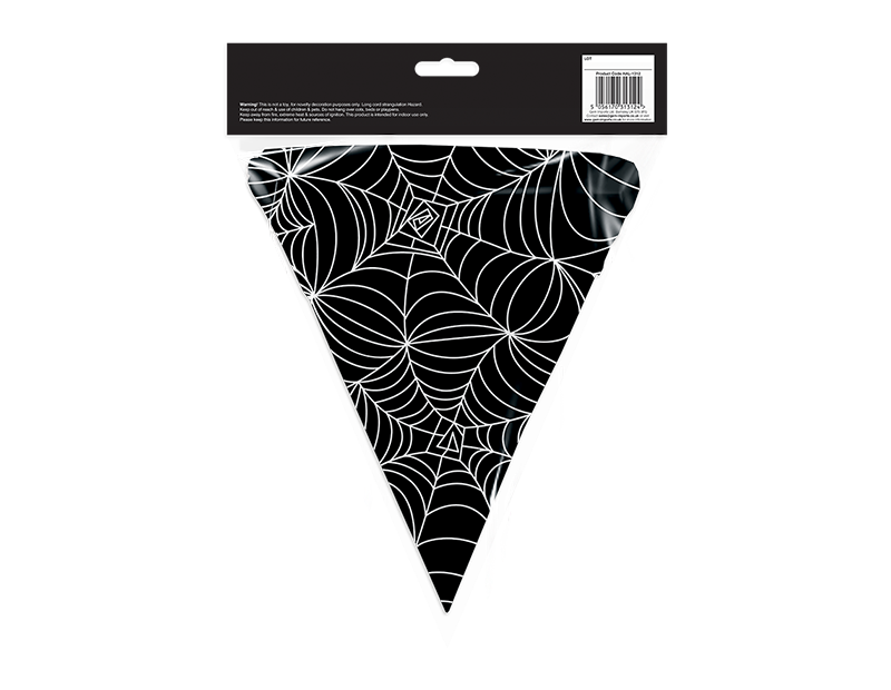 Each flag measures 26cm x 20cm and features black and white colours with a matching colour ribbon for hanging. Perfect for Halloween parties and celebrations.