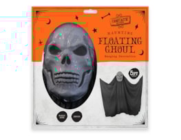 These hanging decorations give the illusion of a floating ghost, ideal for halloween parties! The plastic skull mask is shrouded with polyester fabric, and can be hung with string from the top of the mask.