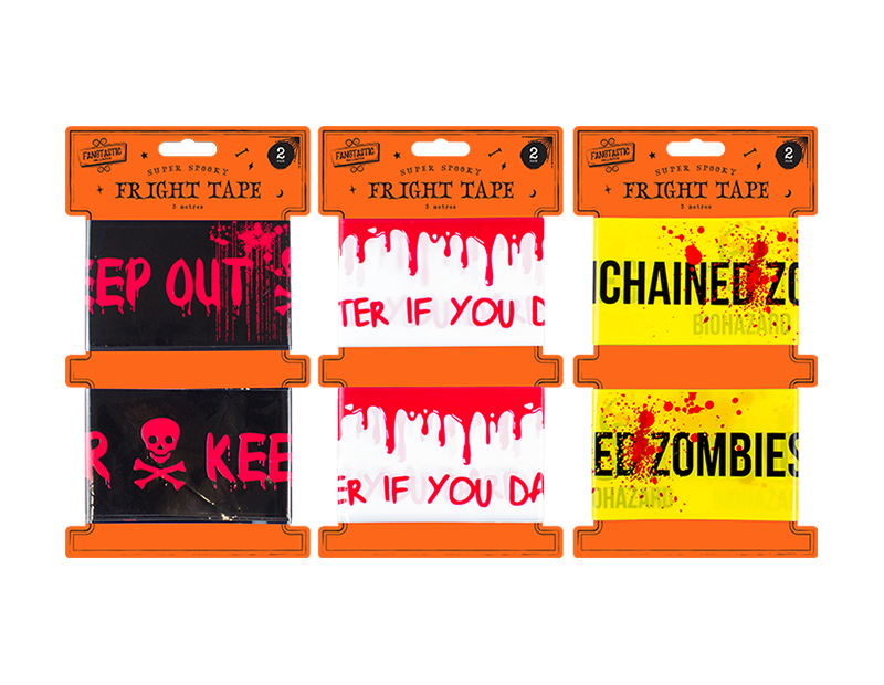 This pack of Halloween Fright Tape contains two rolls of tape that each measure 3 metres long x 7.5cm width.