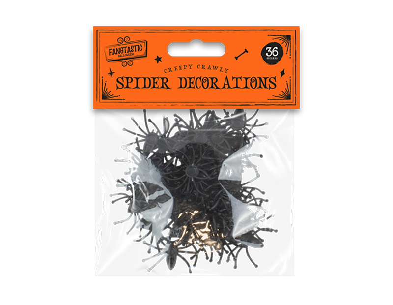 Each creepy crawly spider measures 3.7cm, and is made from durable plastic with black glitter details.