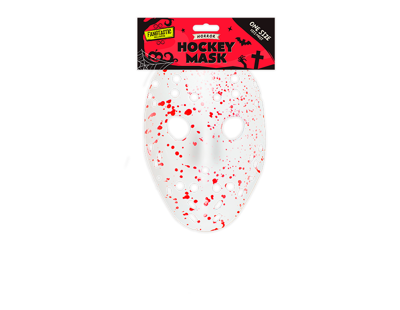This Halloween Horror Mask is suitable for adults and consists of a plastic face mask that is designed in the style of a hockey mask and an attached black elastic to secure it whilst wearing.