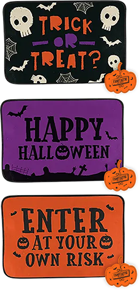 Welcome guests with a frightful scare with this Halloween printed doormat. Each doormat measures 60 x 40cm. Suitable for indoor use, each mat features a polyvinyl pattern on the under side to help grip to the floor.