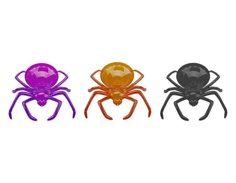 Each spider is made from glittery plastic with the bowl on it's back, and each carton comes with three assorted colours: orange, purple and black.