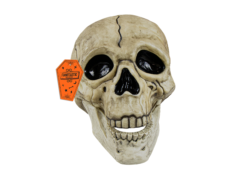Each skull measures H12 x W14 x D18.5cm and is constructed from plastic with a moveable jaw, and is painted to look realistic.
