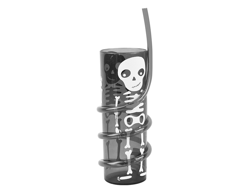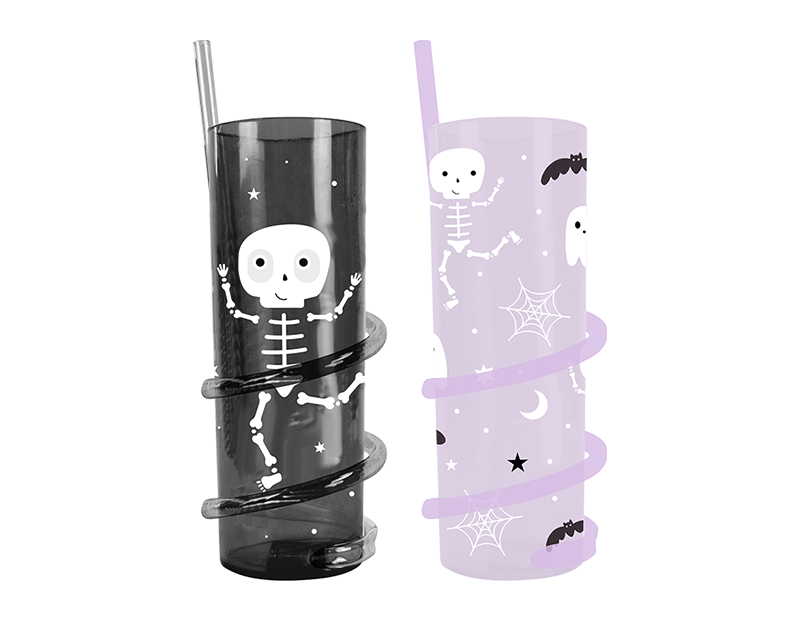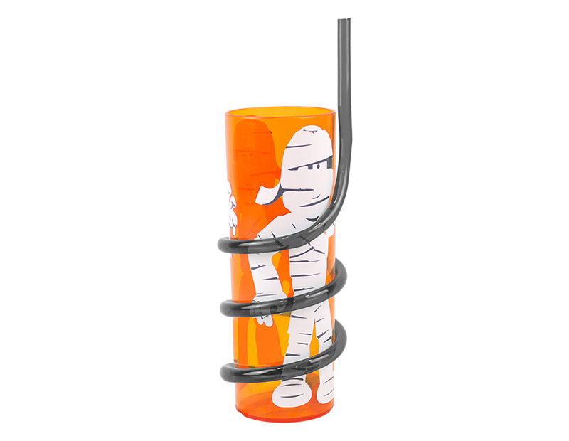 These Halloween Spiral Straw tumblers are constructed from food-safe plastic and feature a spooky Halloween printed design on both sides of the tumbler.