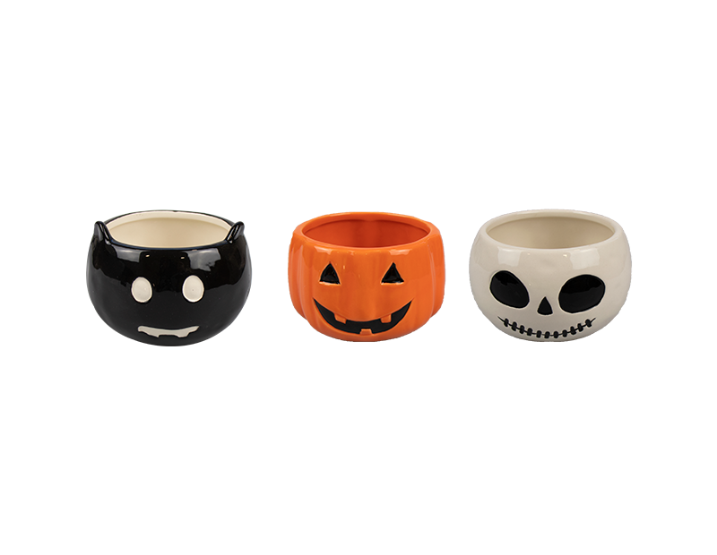 Each bowl features a Halloween themed design and is 12cm in diameter and 7.5cm tall. Each carton comes with three assorted designs.