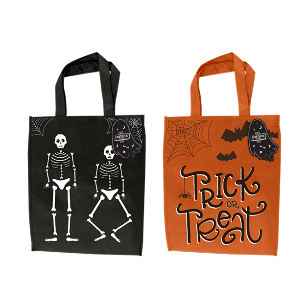 Each bag is constructed from polyester and features a bold colour, sturdy handles and a Halloween printed design.