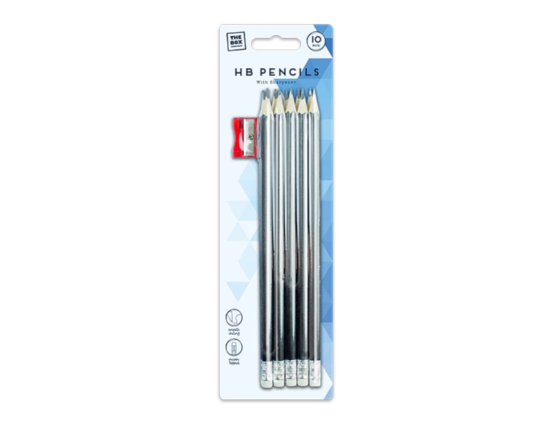 This pack of HB Pencils contains ten individual pencils that measure 19cm and are constructed from wood. Each pencil contains an internal piece of graphite that has a shading darkness of HB and is ideal for drawing and writing.