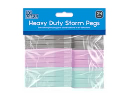 These heavy-duty storm pegs are extra strong to secure laundry in all conditions. Each pack contains x24 pegs in an assortment of colour.