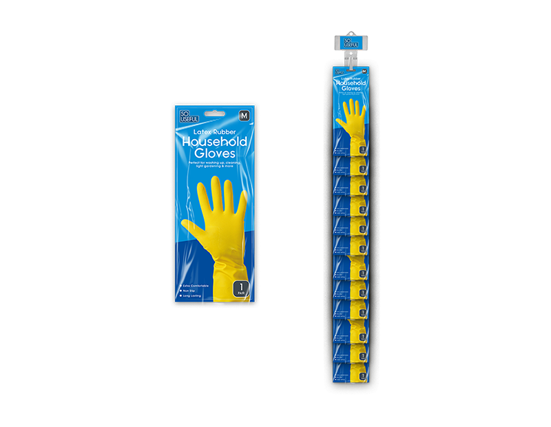 Protect hands, nails and skin from the harsh effects of chemicals, detergents and hot water with these medium latex rubber household gloves.
