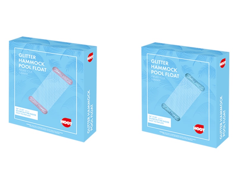 Inflatable glitter hammock pool float with each end of hammock inflates with a net in the middle.