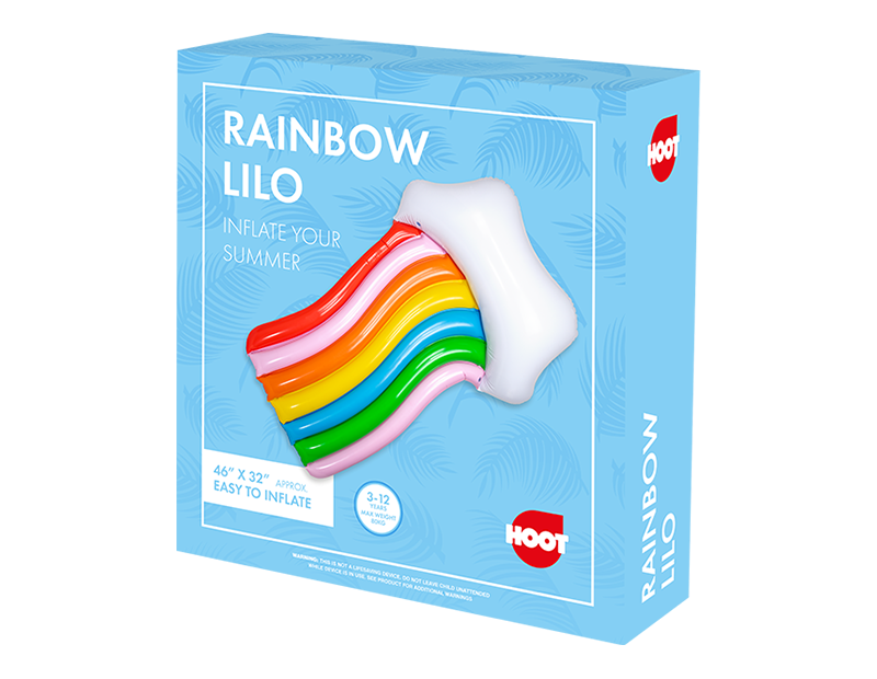 Add a splash of colour to summer fun with this vibrant inflatable rainbow lilo. Perfect for lounging by the pool or at the beach, this large float provides a comfortable and stylish way to relax in the summer sun.